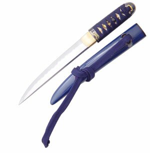 Ręcznie kute tanto. Pochwa lakierowana, niebieska z wstawkami z byczego rogu. Rękojeść drewniana, pokryta wysokiej jakości skórą, okręcona sznurem z wysokiej jakości japońskiej bawełny.